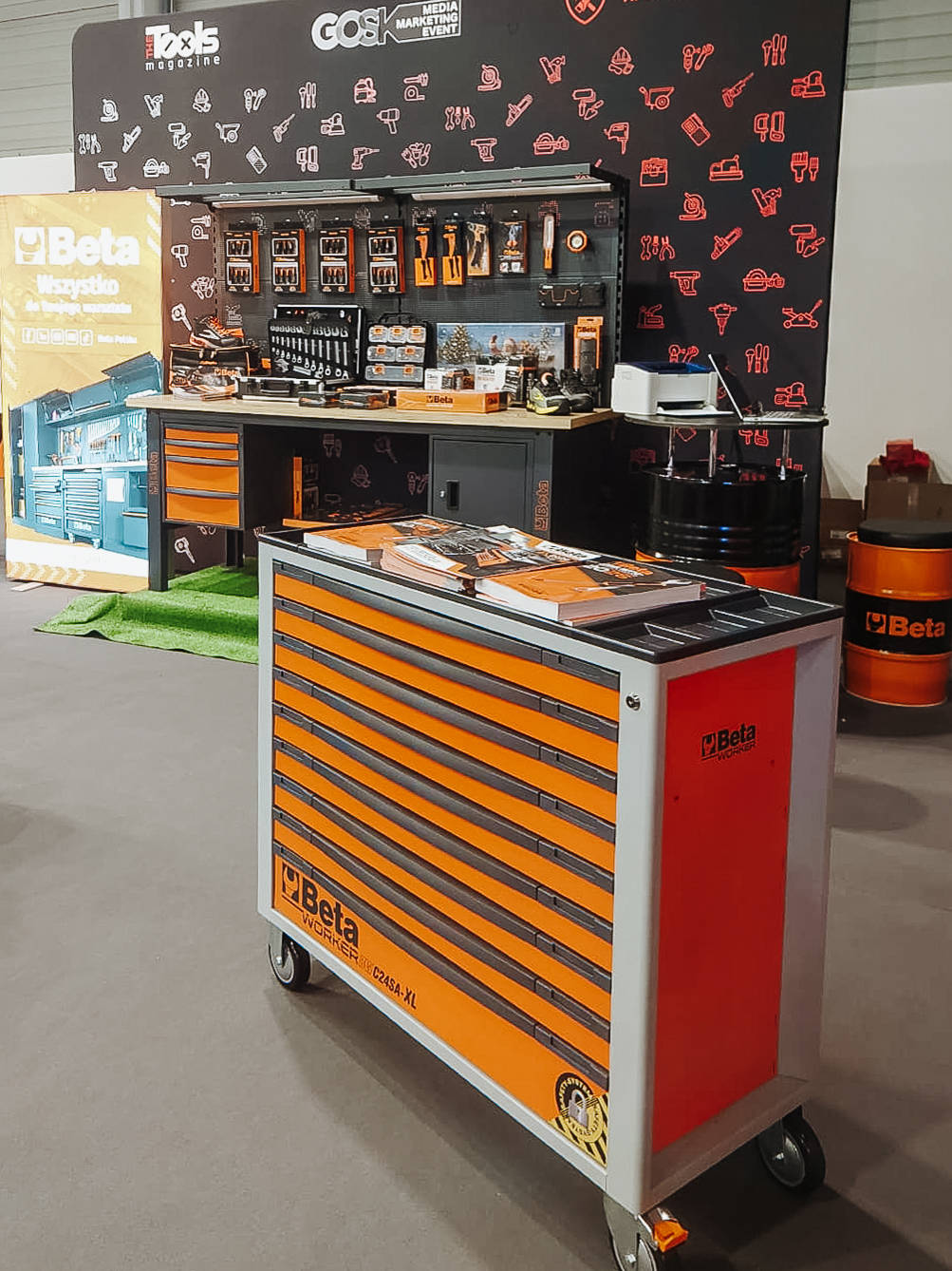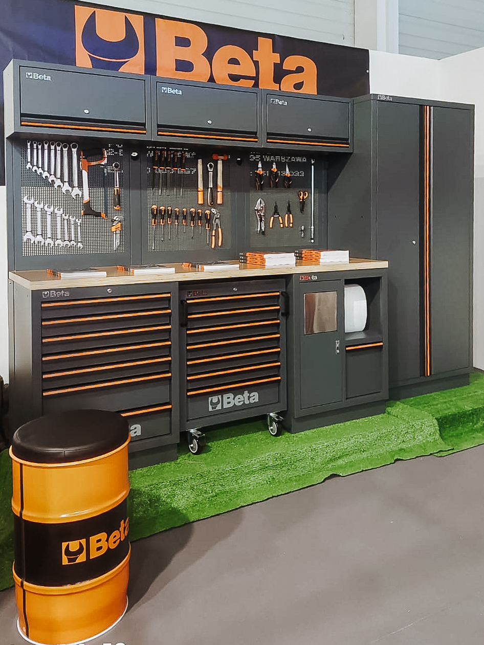 Jednym z głównych punktów naszej prezentacji był system mebli warsztatowych C45PRO 2.0. To rozwiązanie projektowane z myślą o intensywnej eksploatacji w warsztatach serwisowych i przestrzeniach technicznych. Modułowa konstrukcja umożliwia elastyczną konfigurację zabudowy, a szeroka gama szaf, szuflad i paneli narzędziowych pozwala precyzyjnie dopasować układ do specyfiki pracy. Solidne blaty robocze i przemyślana organizacja przestrzeni przekładają się na realne skrócenie czasu operacyjnego i większą kontrolę nad narzędziami.